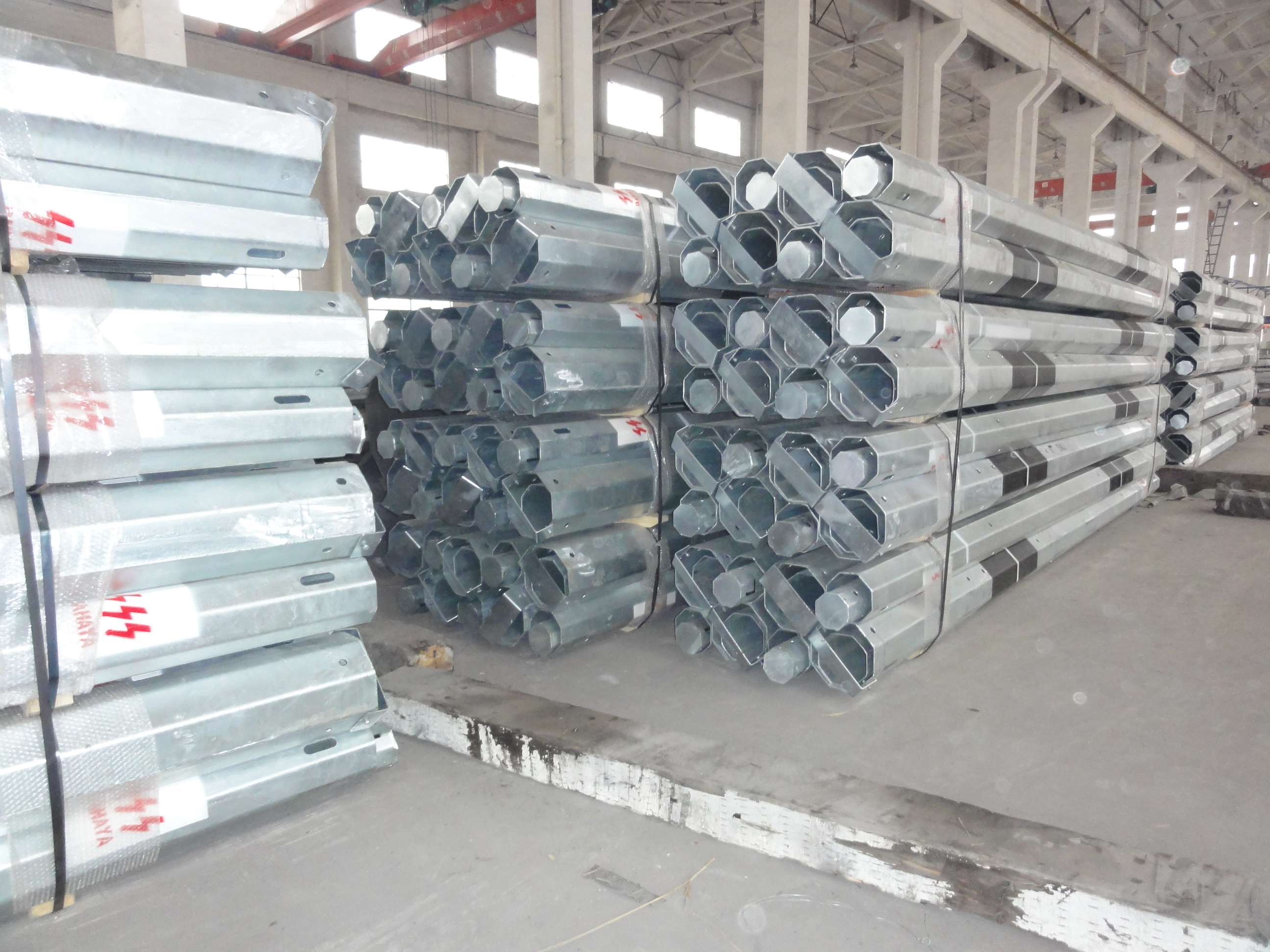 Because of the long and thin shape,closed polygonal section and apply of high strength steel material,these steel poles have excellent durability.they can withstand the extreme condition,such as the frost climate,unbalanced loads, or breaking of wire.